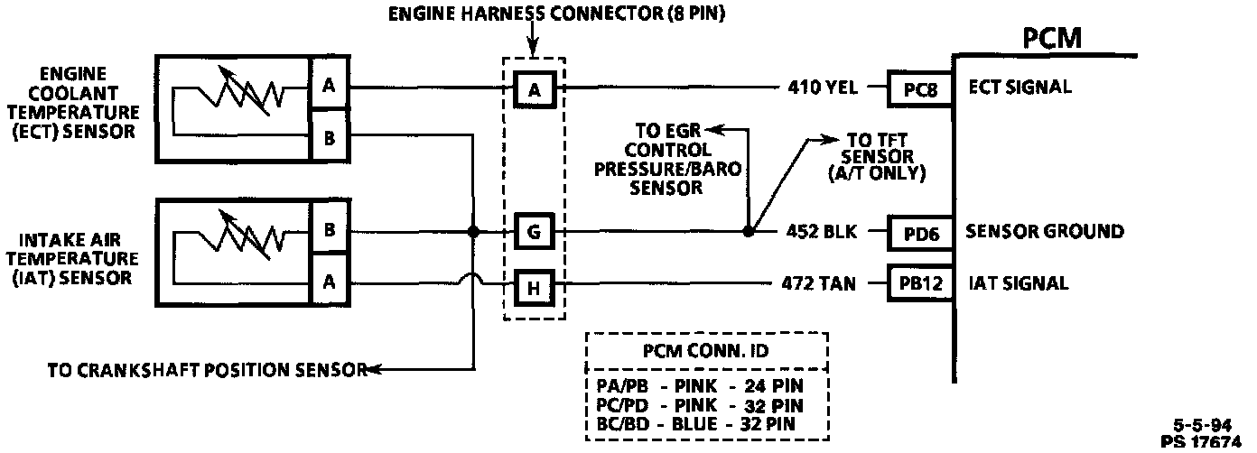 The Engine Coolant Temperature (ECT) sensor is a thermistor that controls signal voltage to the Powertrain Control Module (PCM). When the engine is cold, the sensor resistance is high, therefore the PCM will see high signal voltage. As the engine warms, sensor resistance becomes less and voltage drops.
