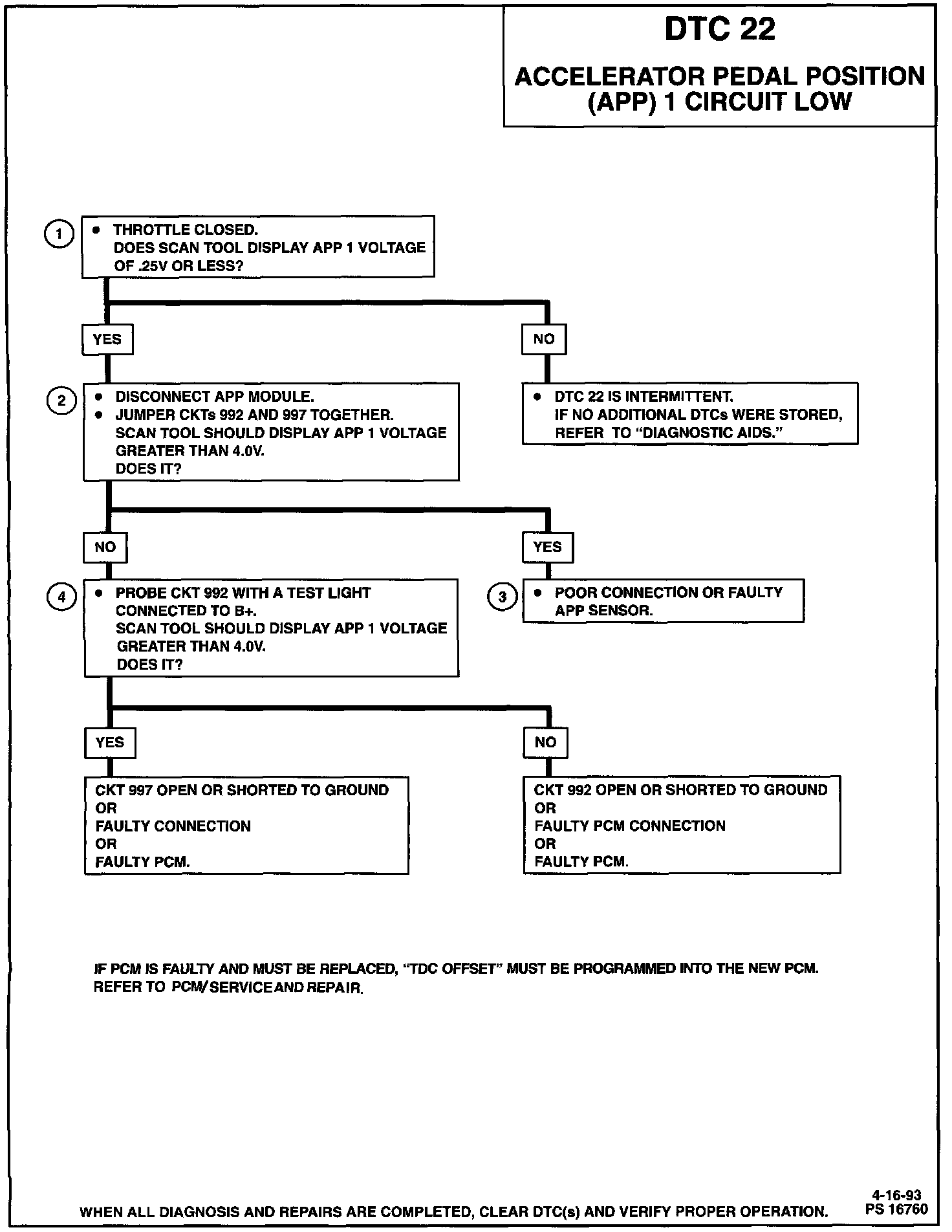 DTC 22 Accelerator Pedal Position (APP) 1 Circuit Low: