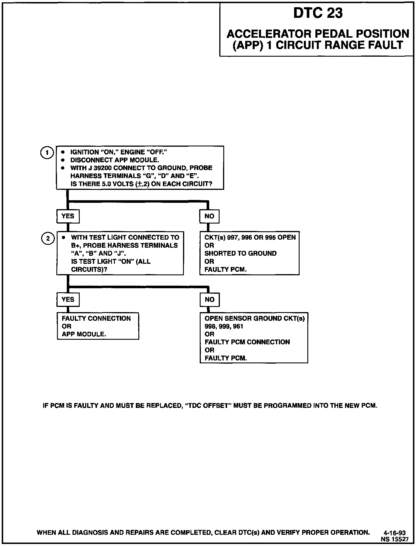 DTC 23 Accelerator Pedal Position (APP) 1 Circuit Range Fault: