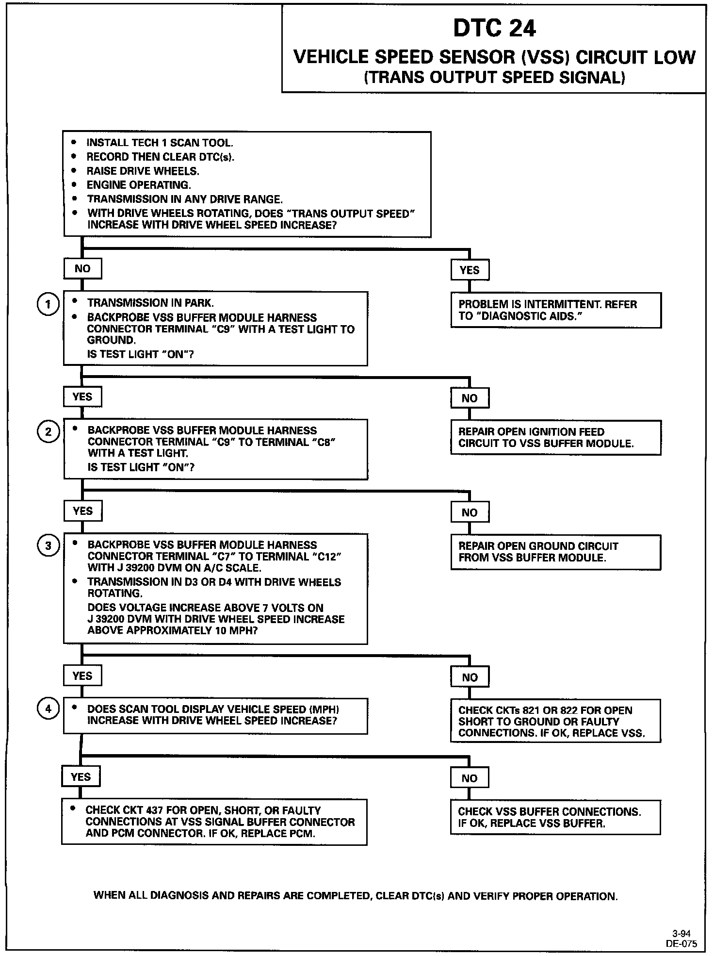 DTC 24 Vehicle Speed Sensor (VSS) Circuit Low (Trans Output Speed Signal: