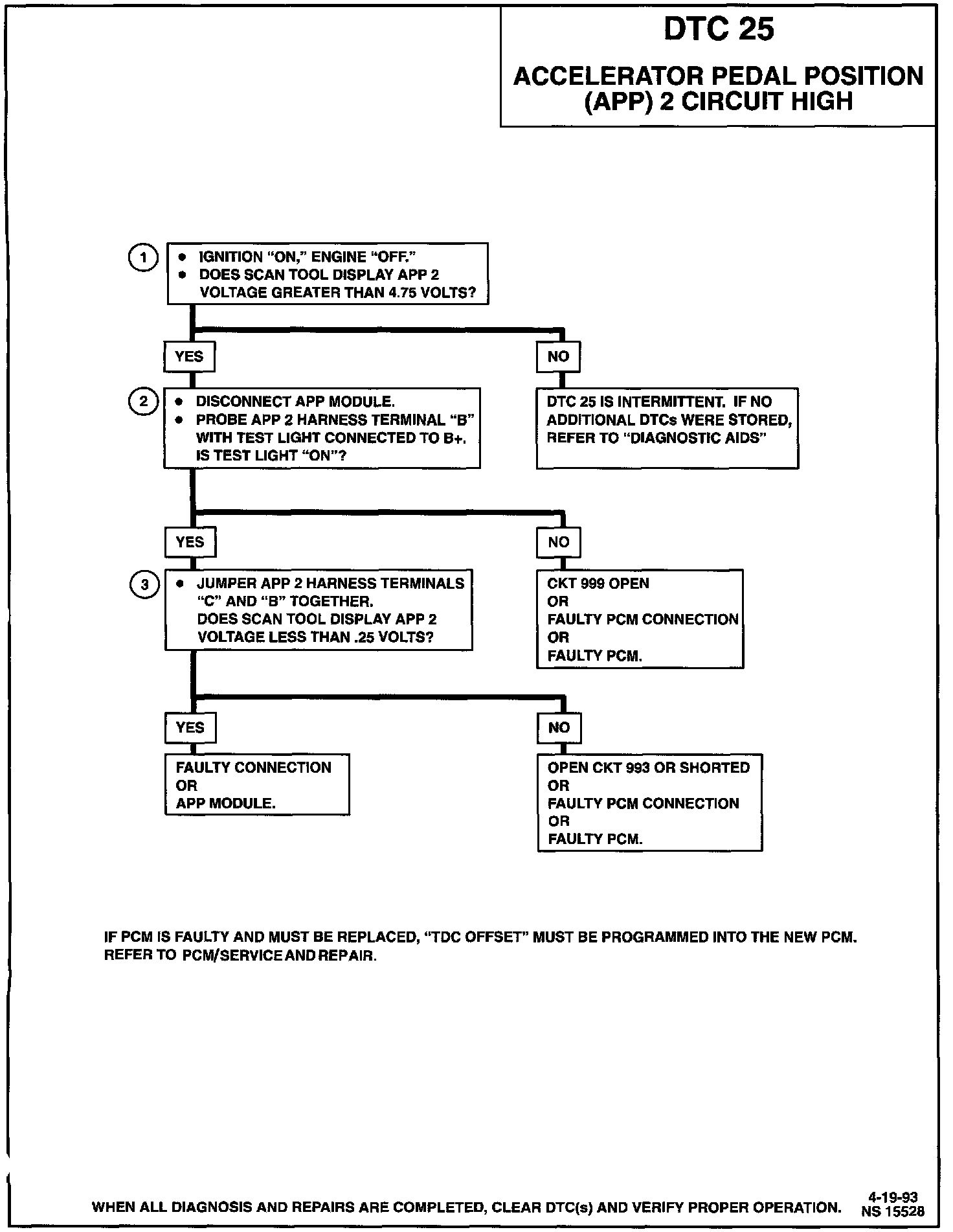 1. This step determines if DTC 25 is a hard failure or an intermittent condition.