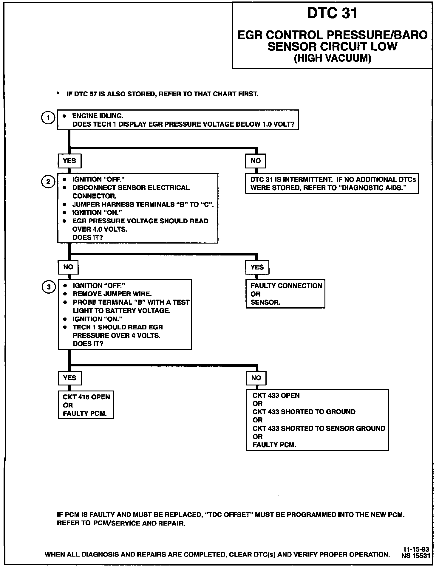 An intermittent open in CKT 433 or CKT 416 will result in a DTC 31.
