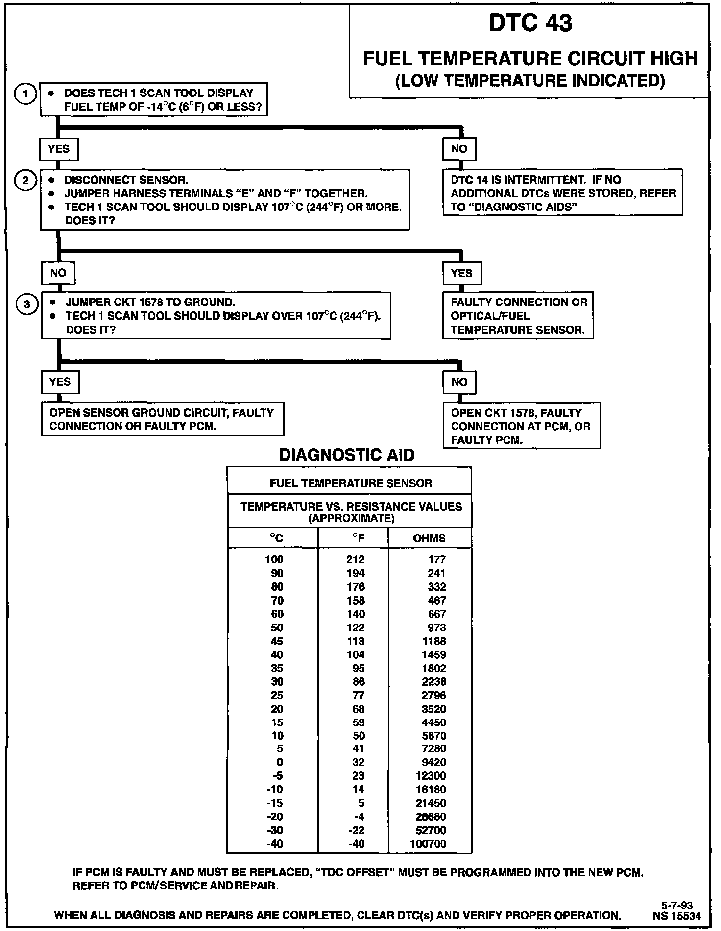 DTC 43 Fuel Temperature Circuit High (Low Temperature Indicated):