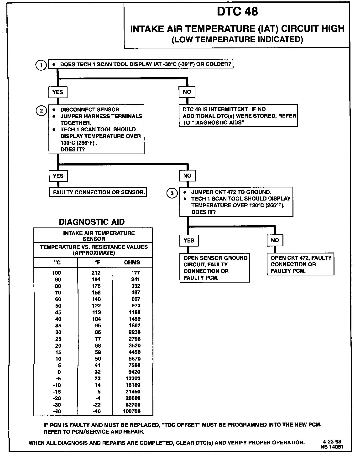 DTC 48 Intake Air Temperature (IAT) Circuit High (Low Temperature Indicated):