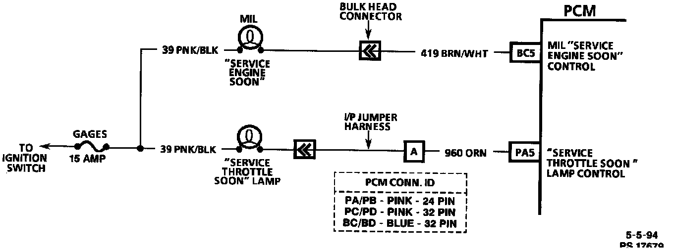 No ignition voltage on CKT 960 when PCM is requesting "Service Throttle Soon" lamp "OFF."