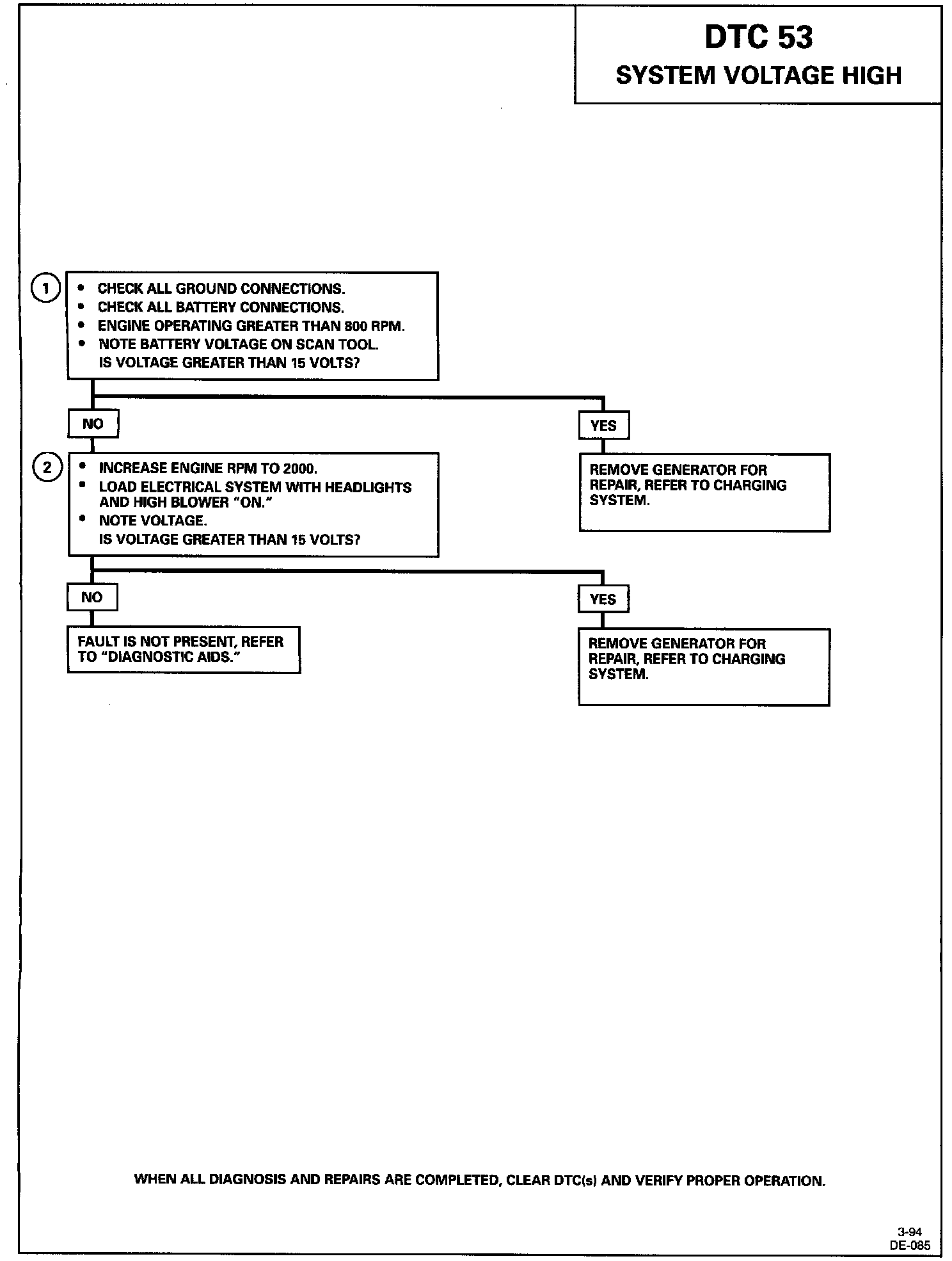 ^ Charging the battery with a battery charger and jump-starting an engine may set DTC 53. If DTC(s) set when an accessory is operated, check for faulty connections or excessive current draw. Refer to Charging System for circuit details.