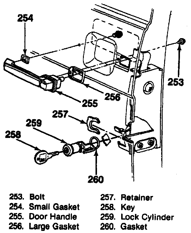 1. Lock cylinder with gasket to the door. The cylinder rod must engage the lock assembly lever.