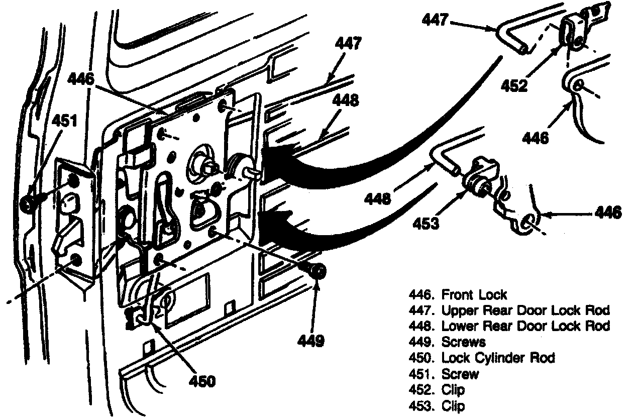 4. Lock to door screws (449 and 451).