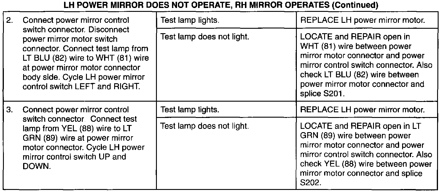 LH Power Mirror Does Not Operate, RH Mirror Operates (Part 2 Of 2):