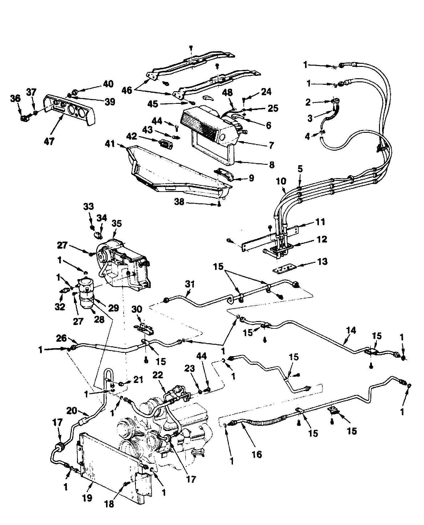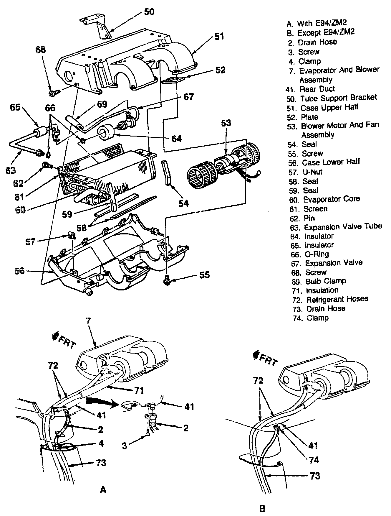 5. Refrigerant lines (72) from the rear of the evaporator and blower assembly (7) (figure 3).