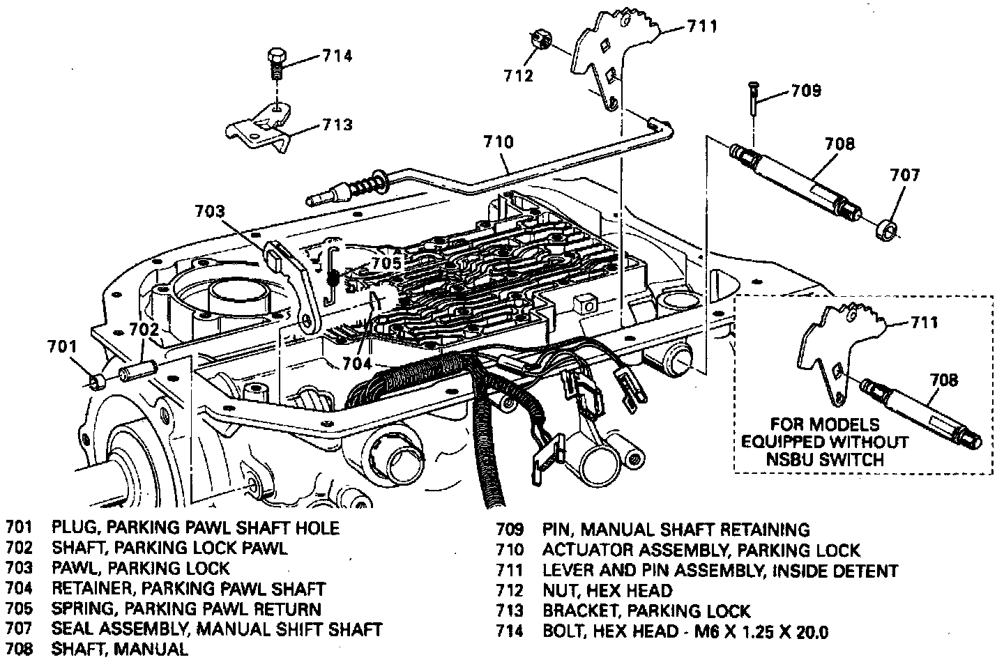 22. Remove parking pawl shaft retainer, shaft and pawl.