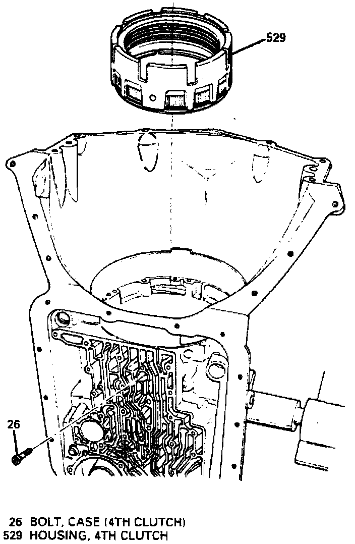 31. Remove fourth clutch bolt using a 4OT Torx head socket. Do not reuse bolt. Damage could result to fourth clutch housing.