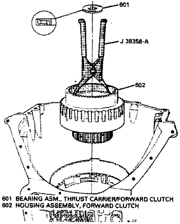 34. Remove forward clutch assembly using tool No. J-38358-A or equivalent.
