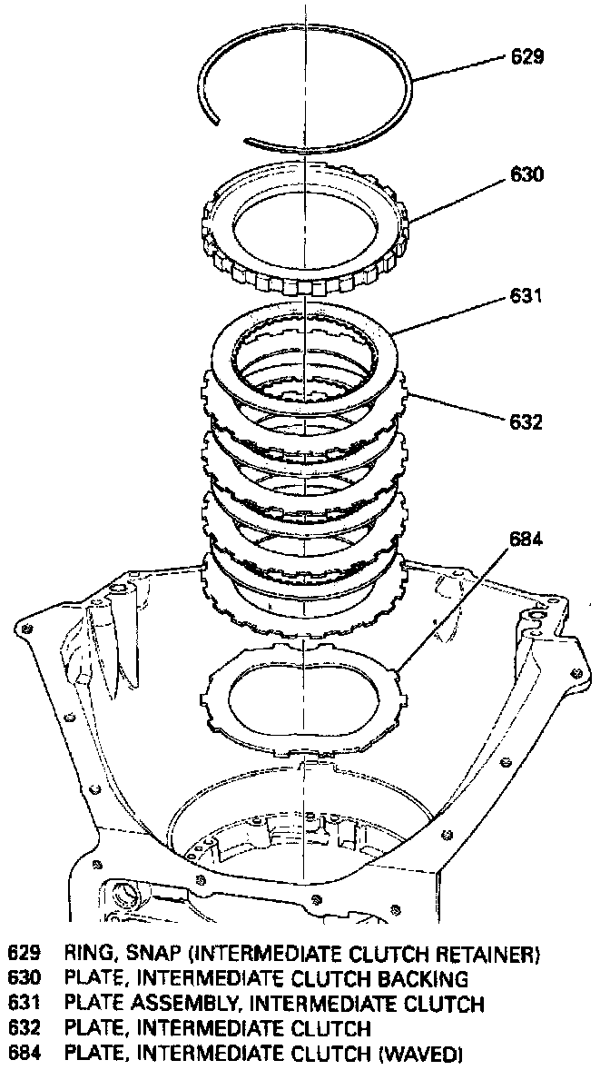 37. Remove snap ring, intermediate clutch backing plate and clutch plates, per figure.