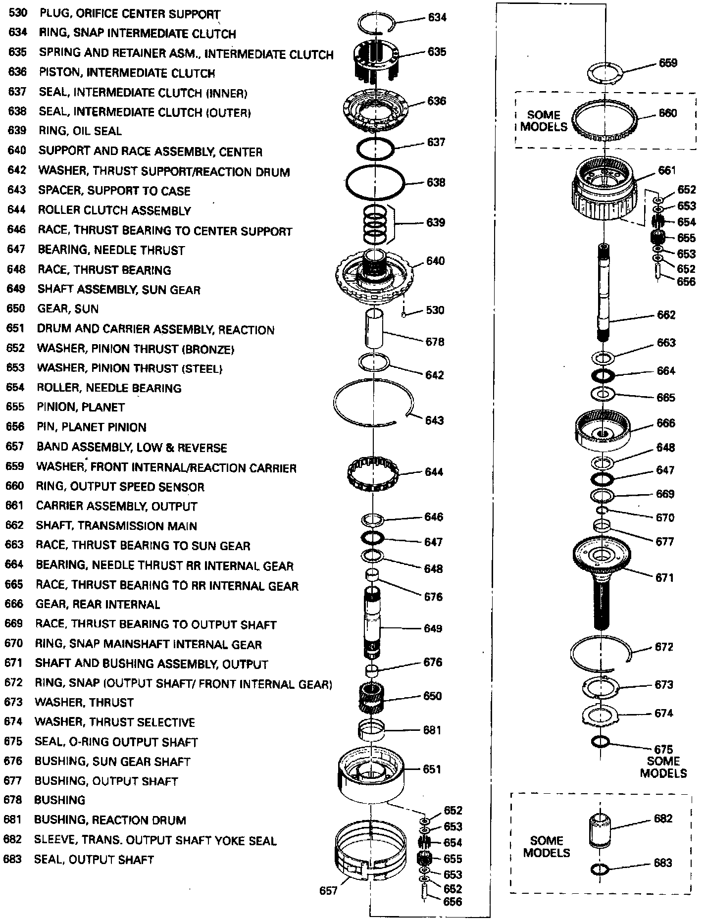 2. Remove sun gear shaft, reaction drum and carrier assembly.
