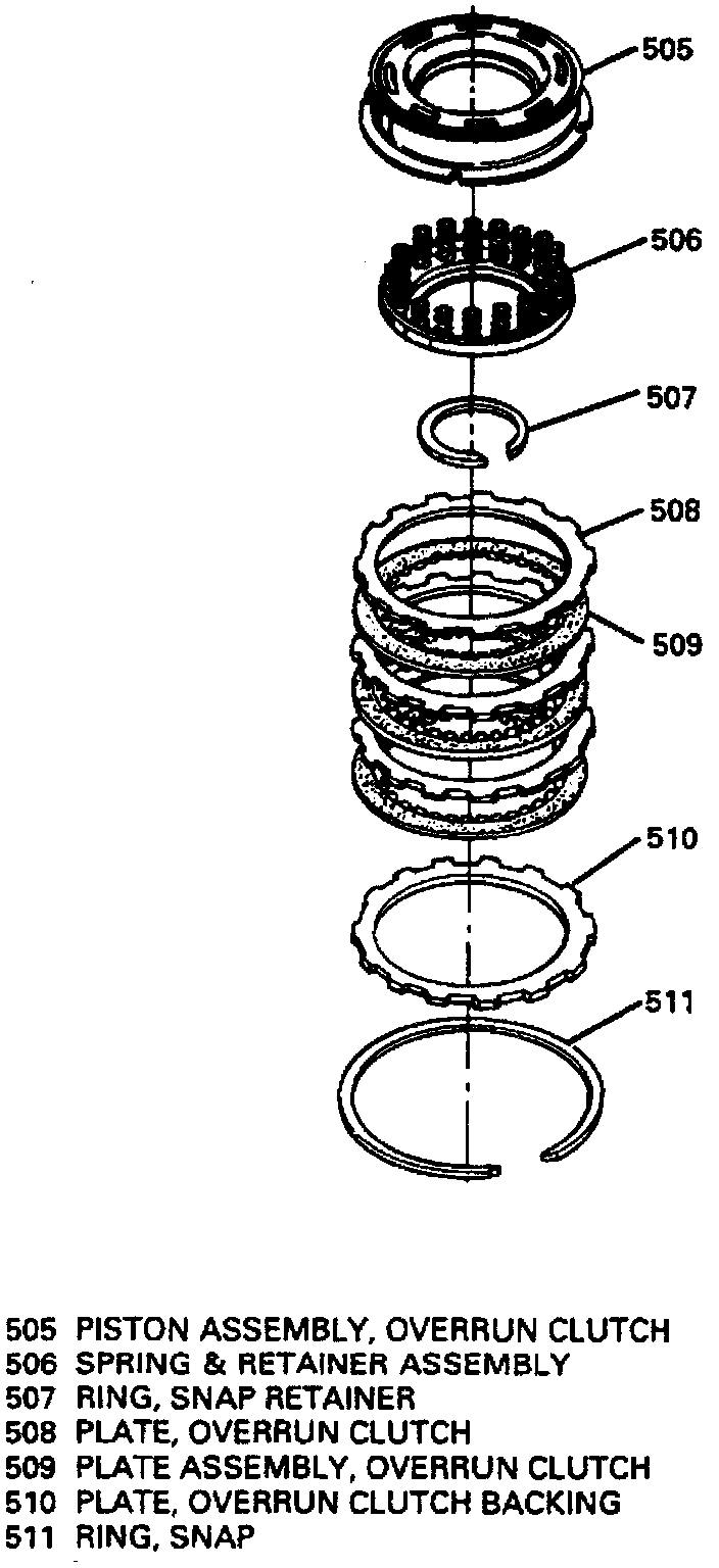 1. Remove snap ring, backing plate and clutch plates, per figure.