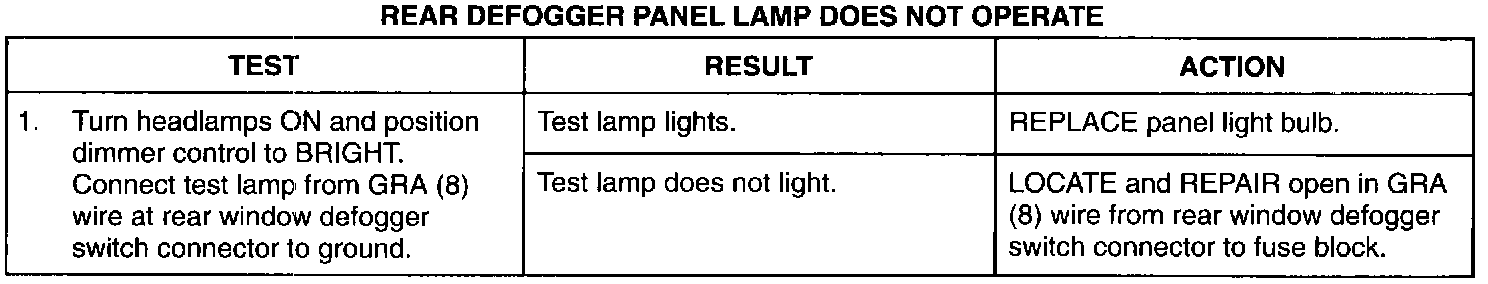 Rear Defogger Panel Lamp Does Not Operate: