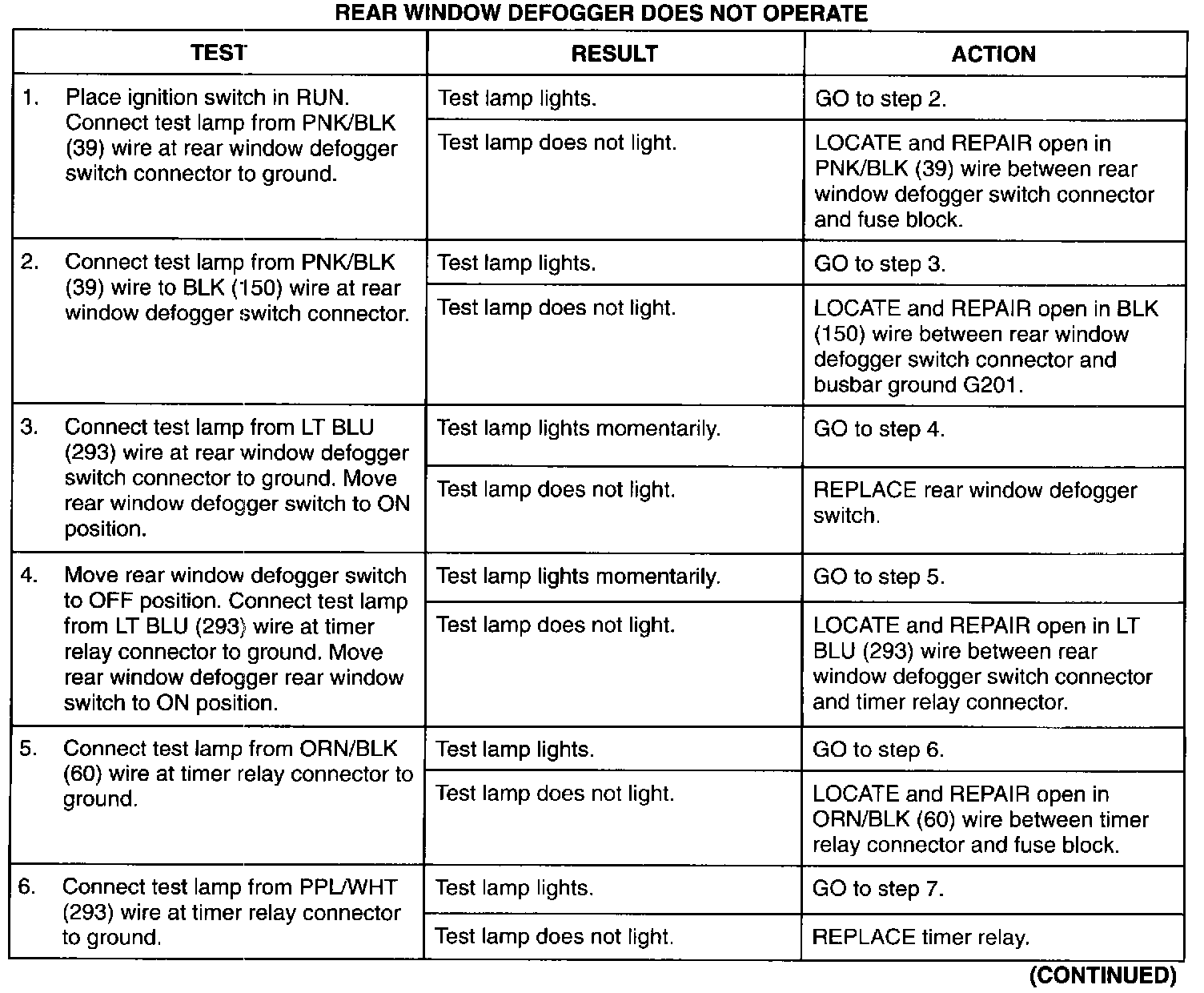 Rear Window Defogger Does Not Operate (Part 2 Of 2):