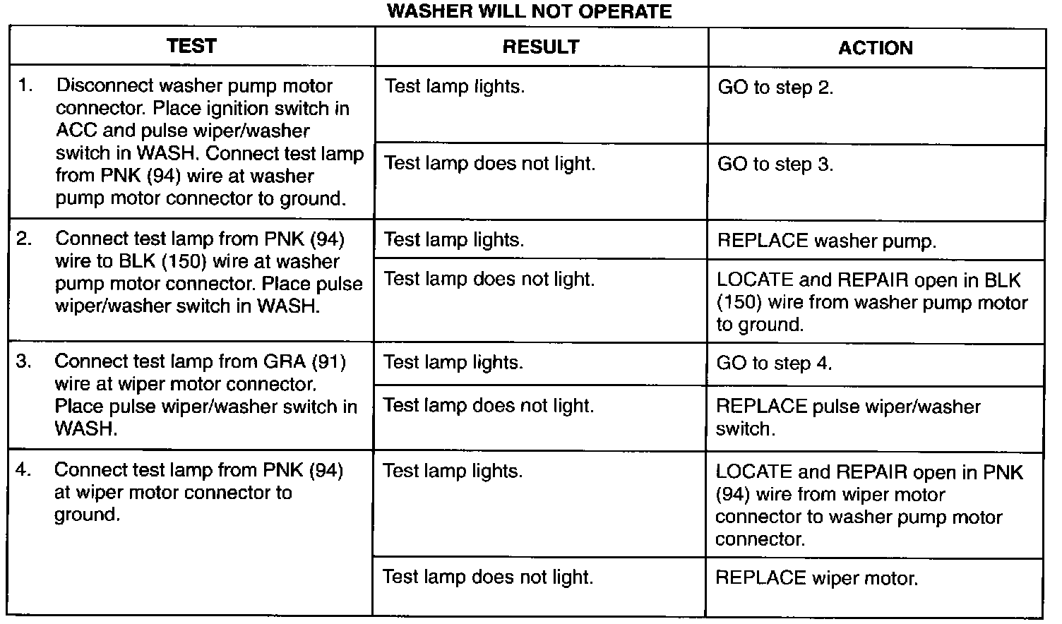 Washer Pump Does Not Operate