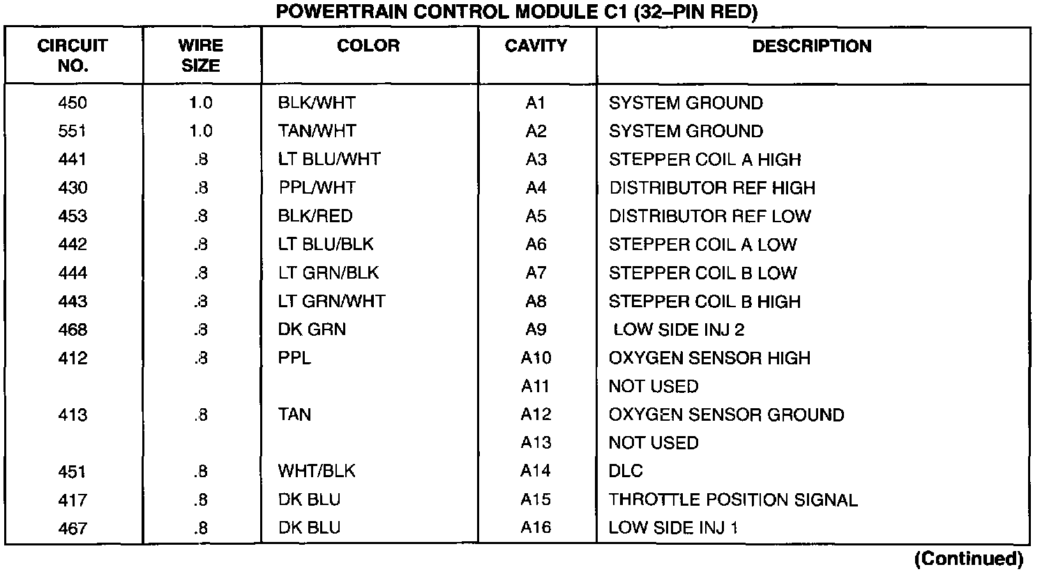 Powertrain Control Module: C1 (Part 2 Of 2):
