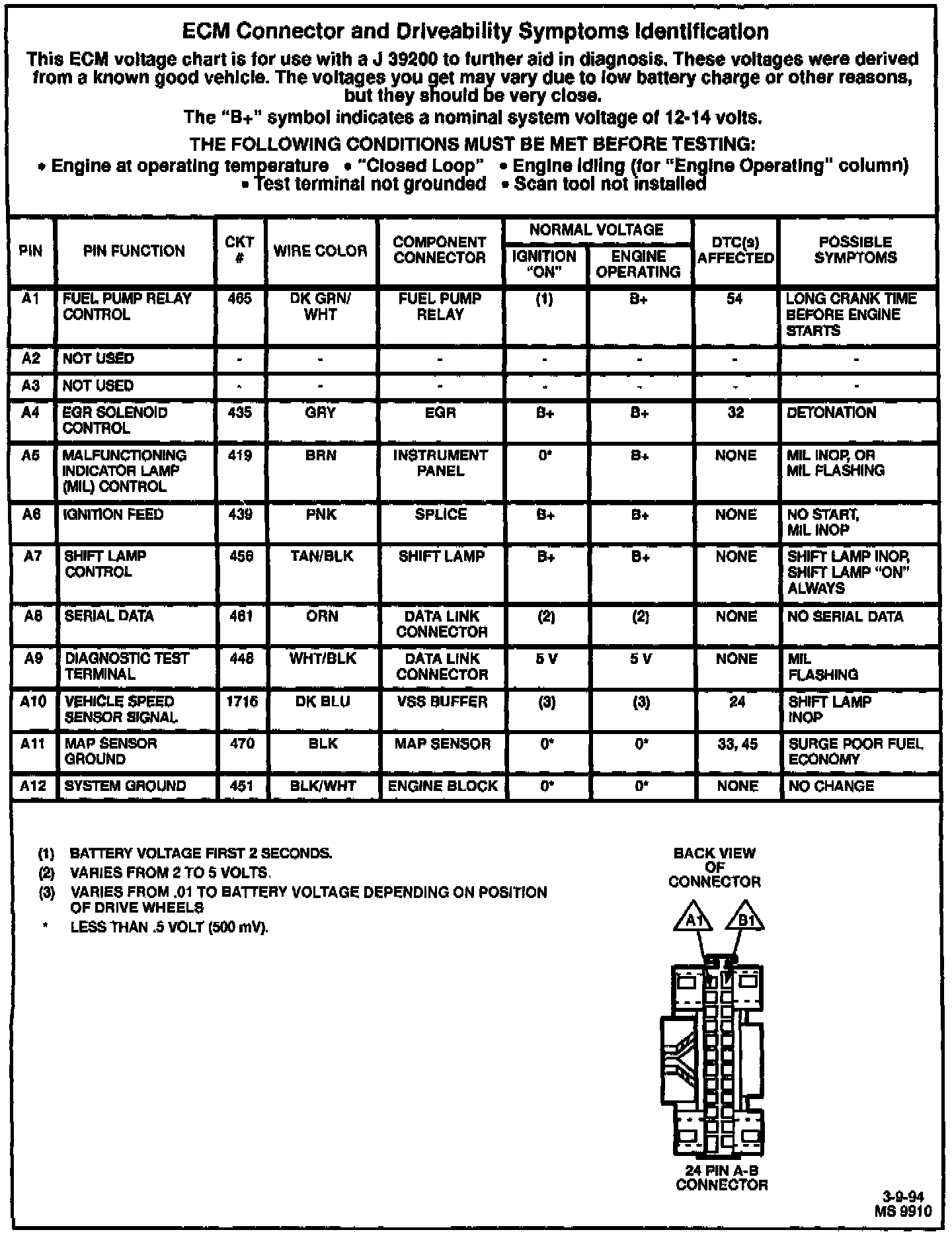 ECM Pin-Out Chart: