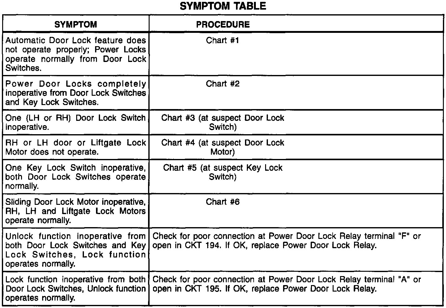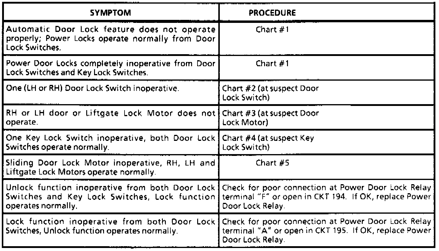Automatic Door Lock Symptom Table: