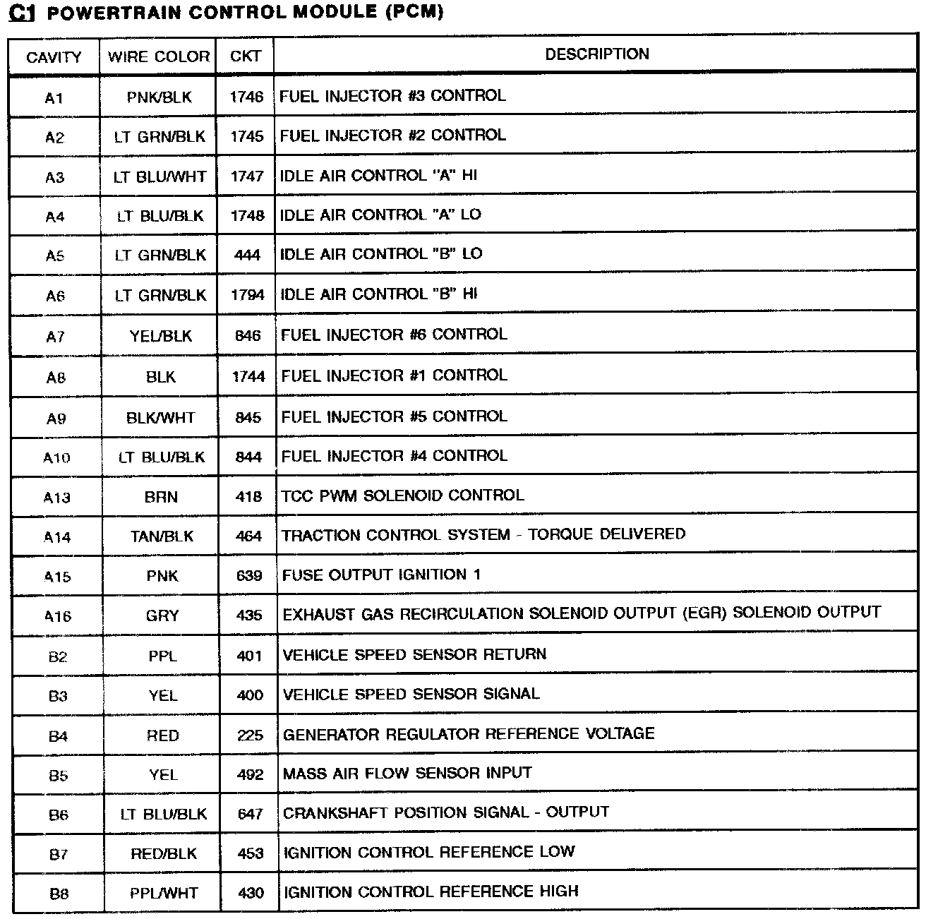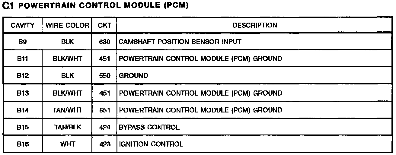 Powertrain Control Module (PCM): C1 (Part 2 0f 2):