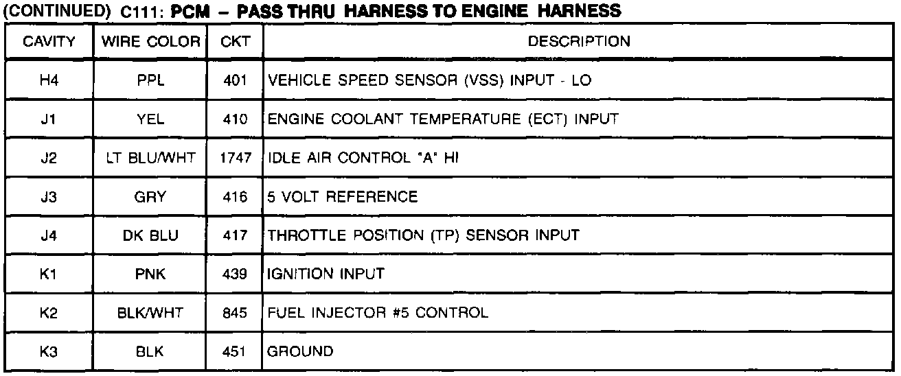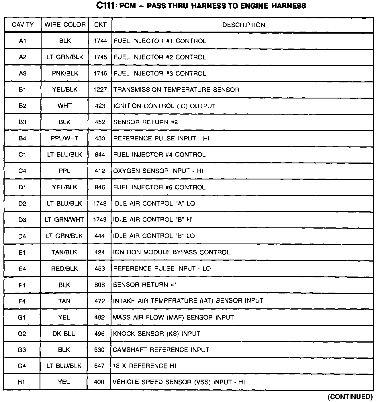 C111: PCM-Pass Thru Harness To Engine Harness (Part 2 Of 2):