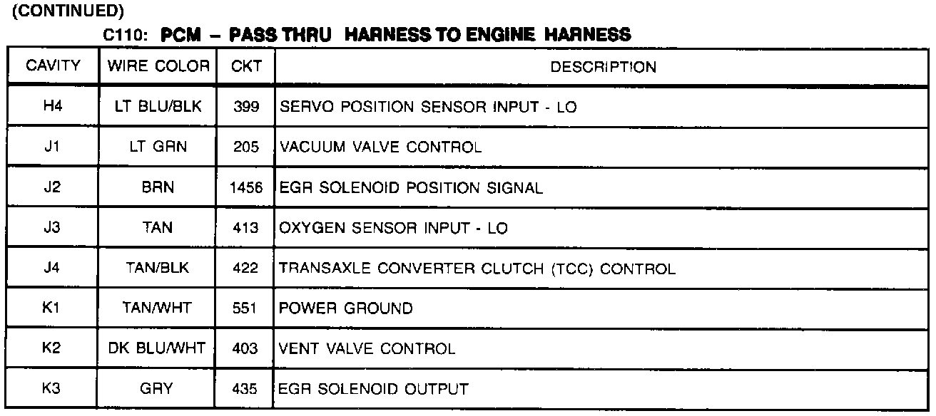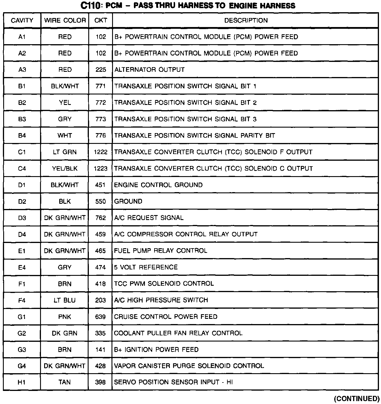 C110: PCM-Pass Thru Harness To Engine Harness (Part 2 Of 2):