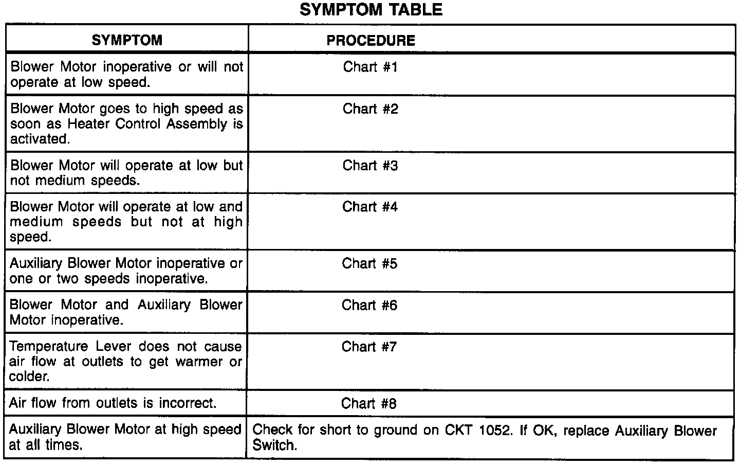 Symptom Table: