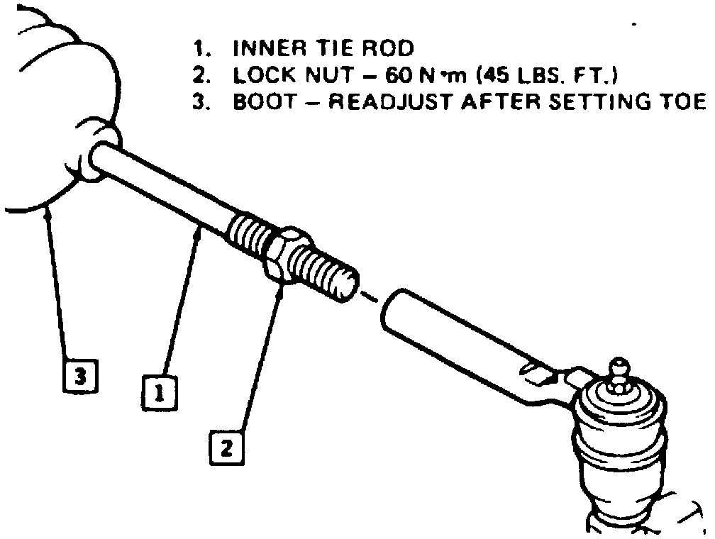 3. Rotate inner tie rod end to obtain correct toe angle.