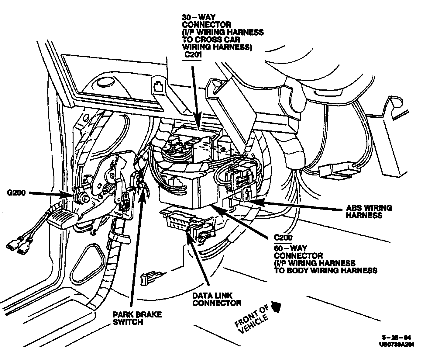 Lower LH "A" Pillar, Near Park Brake:
