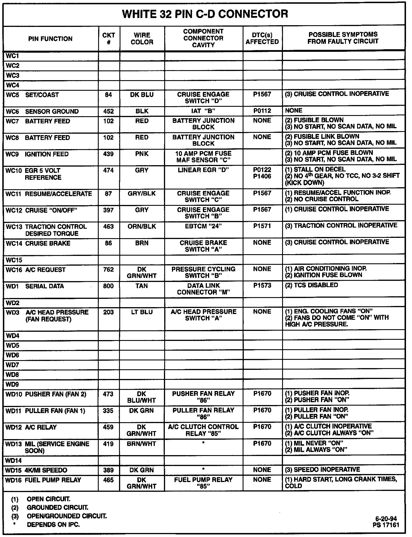 PCM Connector Symptom Chart: