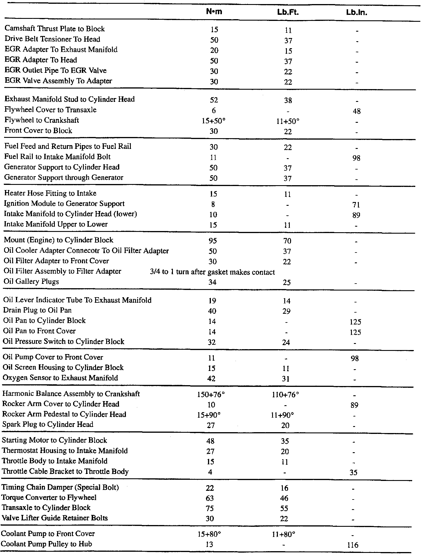Fastener Tightening Specifications - Engine