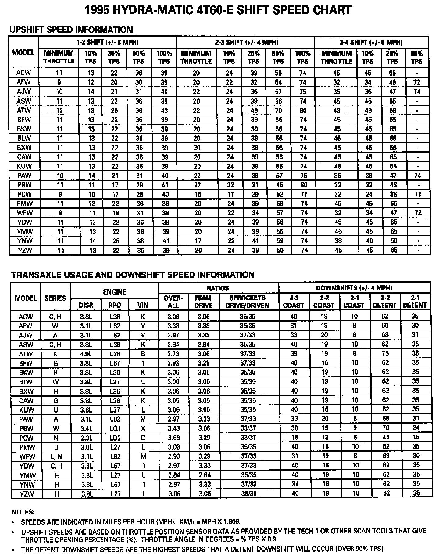 Shift Speed Chart:
