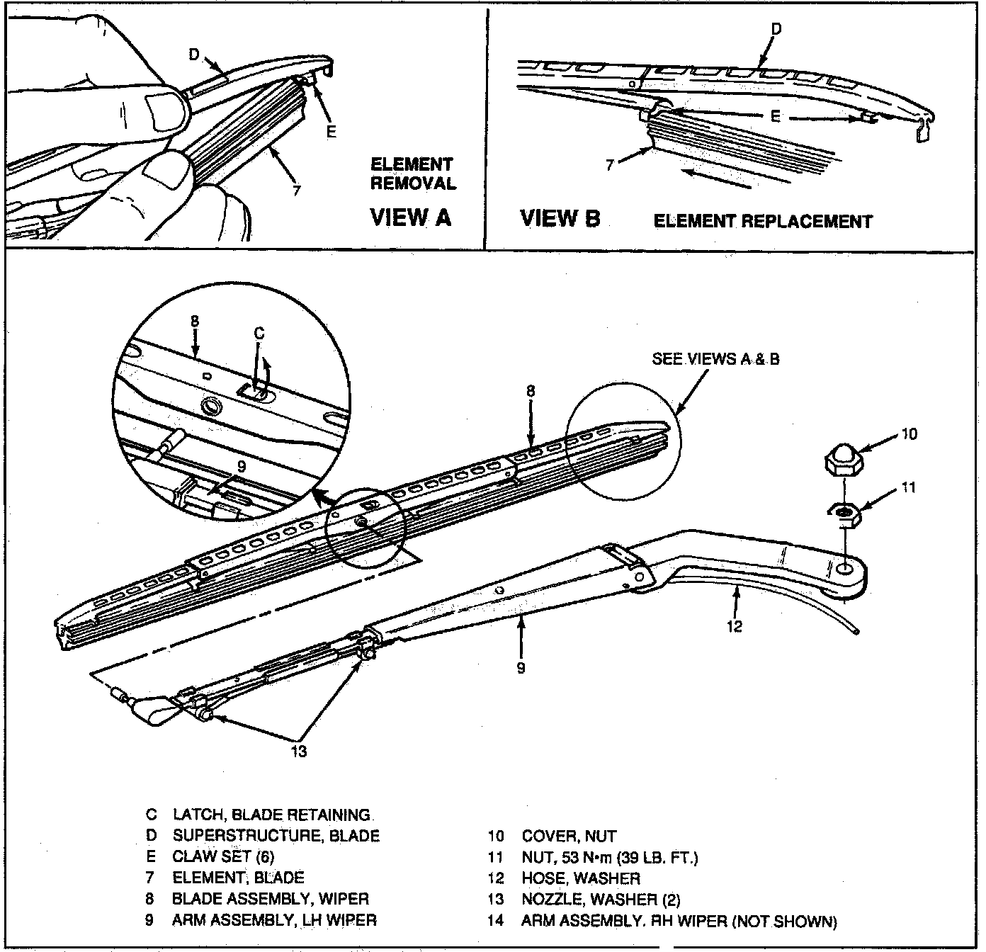 Important It may be necessary to allow for some movement of wiper arm assembly when nut (11) is being tightened. If arm assembly moves away from desired alignment mark, loosen nut and reposition arm assembly by moving blade tip.