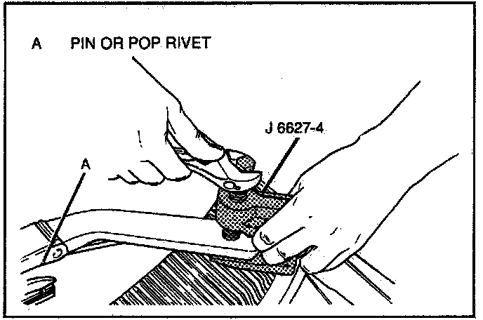 4. Lift wiper arm assembly and insert a suitable pin or pop rivet completely through the two holes located next to pivot of arm.
