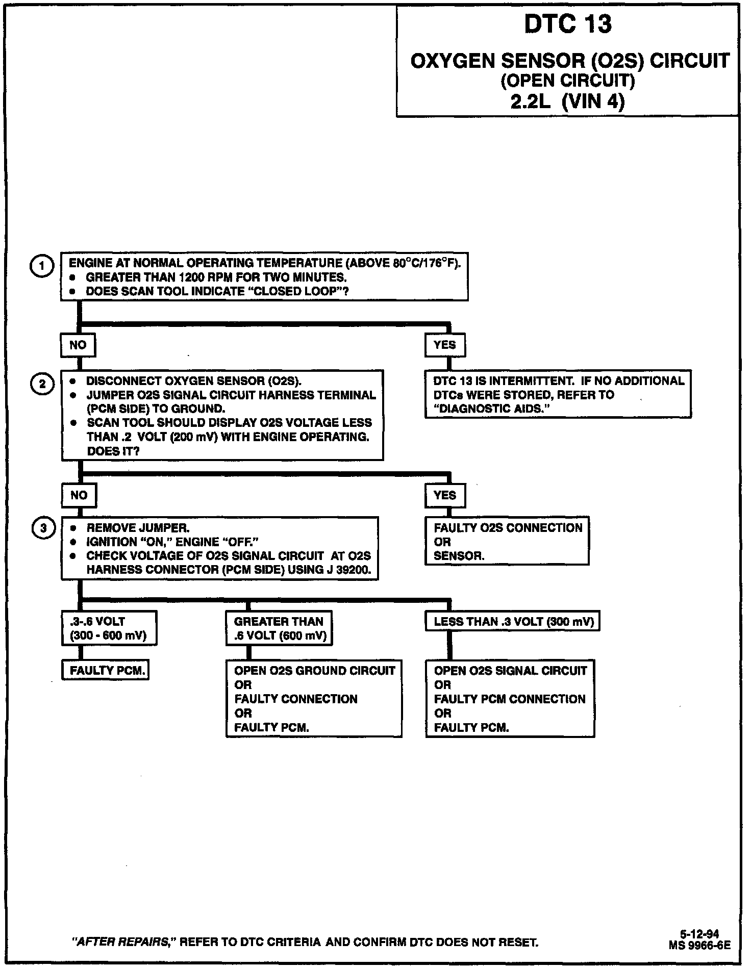 DTC 13 Oxygen Sensor (O2S) Circuit (Open Circuit):