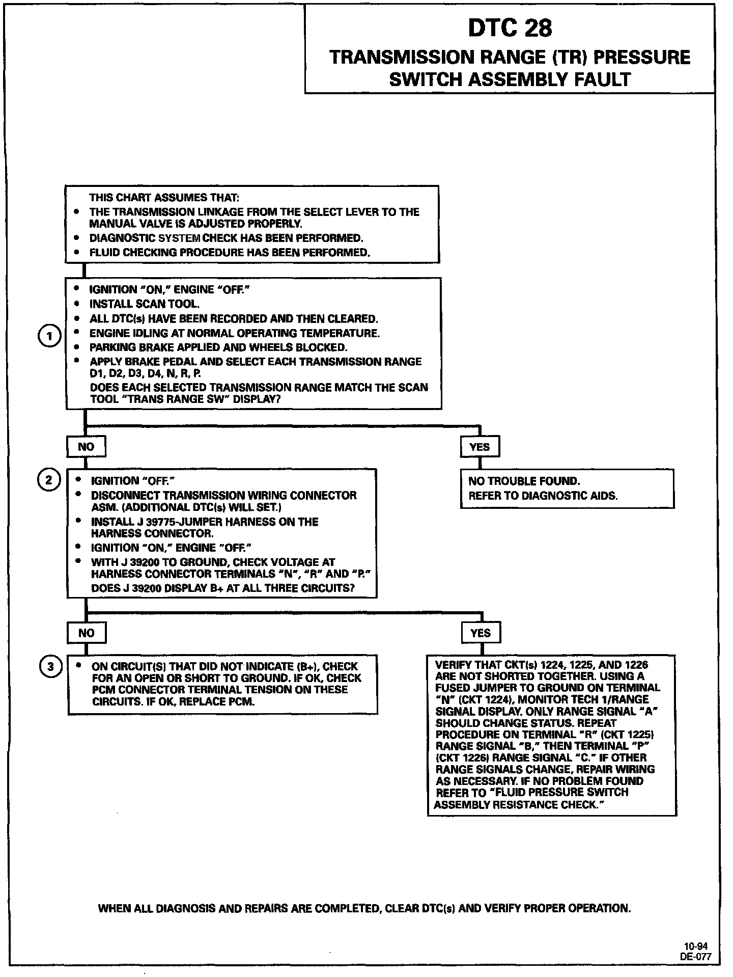 DTC 28 Transmission Range (TR) Pressure Switch Assembly Fault Diagnostic Chart: