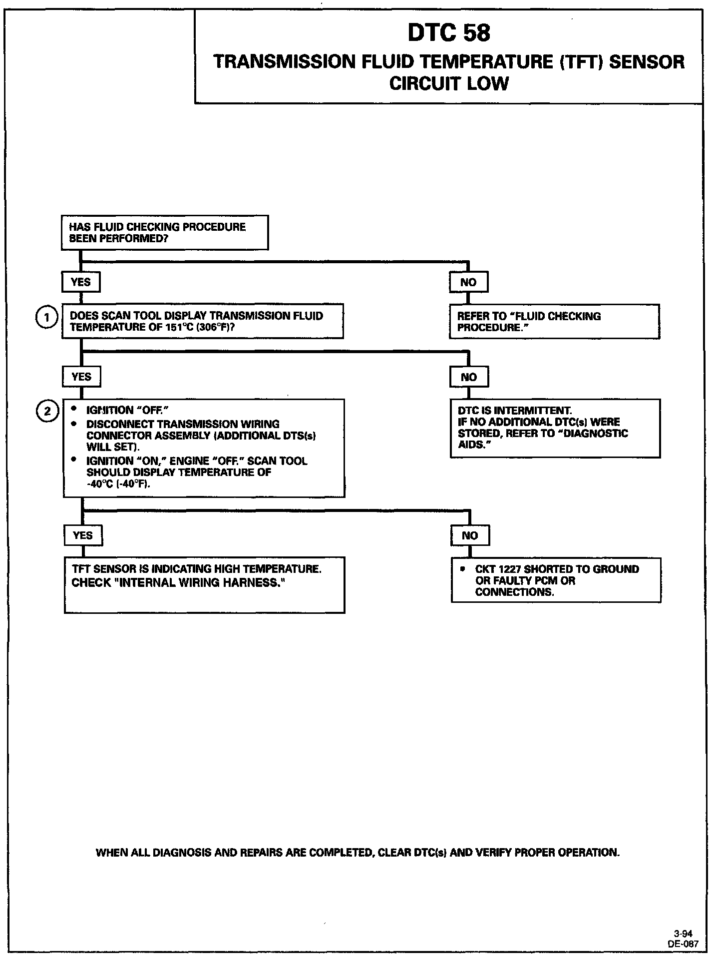 DTC 58 Transmission Fluid Temperature (TFT) Sensor Circuit Low: