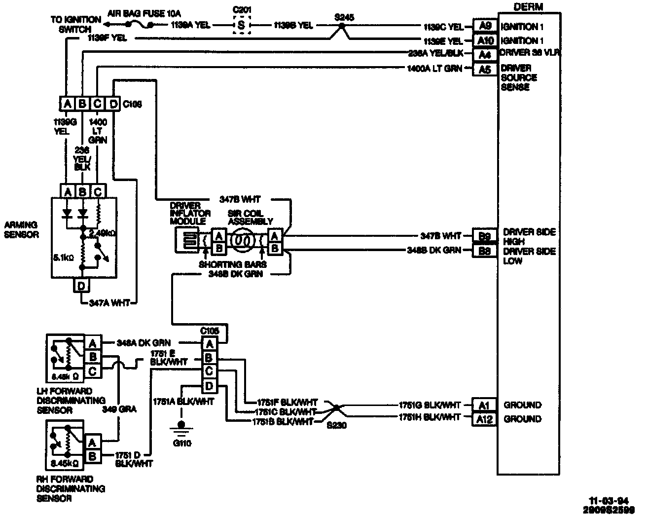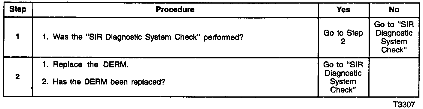 DERM turns "ON" the "AIR BAG" warning lamp and sets a diagnostic trouble code.
