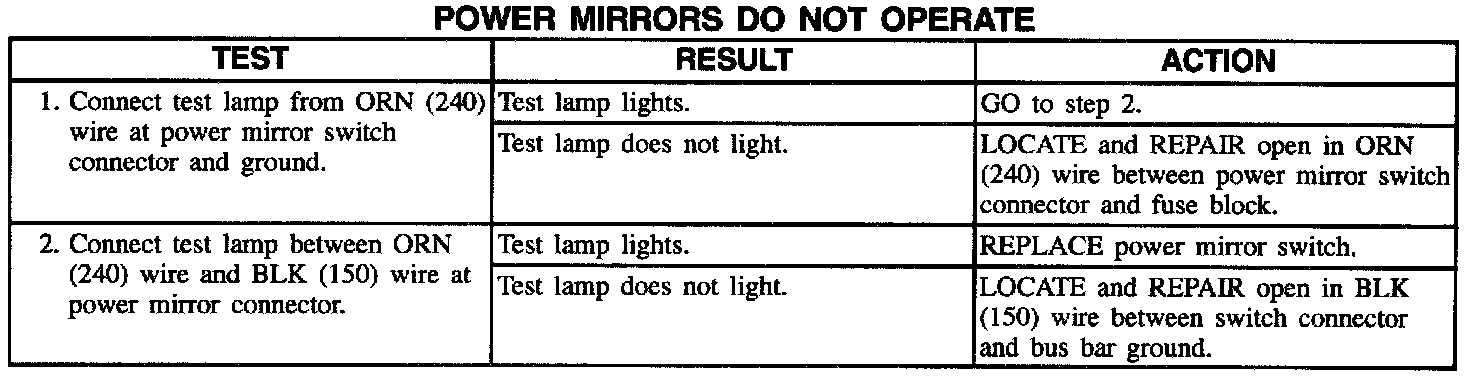 Power Mirrors Do Not Operate: