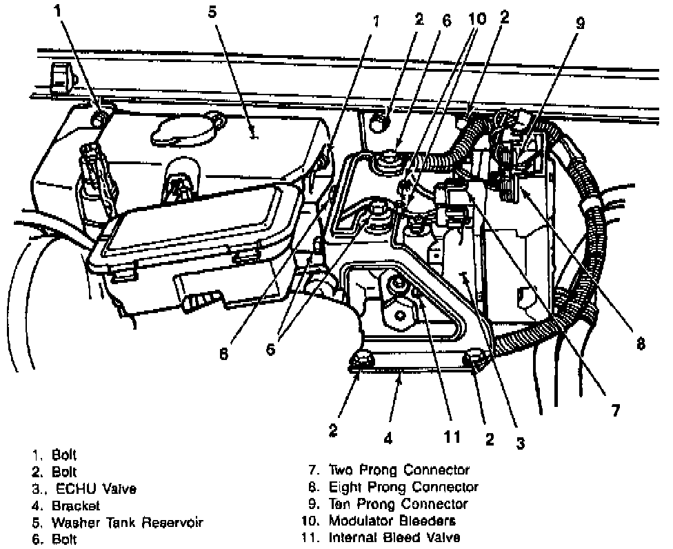 (EHCU) Electro-Hydraulic Control Unit / (BPMV) Brake Pressure Modulator Valve Module is not serviceable and must be replaced as a unit.