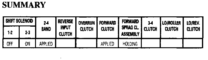 3-4 Relay Valve and 4-3 Sequence Valve: Spring force holds these valves in the downshifted position (First, Second and Third gear position). 2nd fluid is blocked by the 3-4 relay valve and servo feed fluid is blocked by both valves in preparation for a 3-4 upshift.