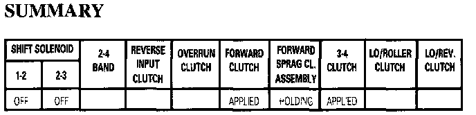 2-3 Shift Solenoid: This solenoid remains de-energized as in Fourth gear and AFL fluid exhausts through the solenoid.