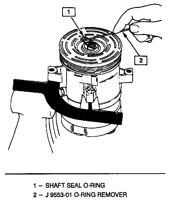 7. Remove and discard the seal O-ring from the compressor neck using O-ring remover J 9553-01.