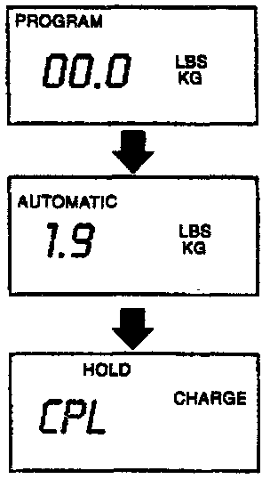 5. When the vacuum sequence has run the programmed time, the display shows "CPL" to indicate that evacuation is complete (see accompanying figure).