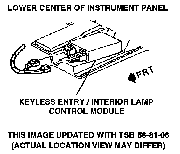 The Interior Lighting Module (also known as the Remote Keyless Entry module) is located in the lower center of Instrument Panel.