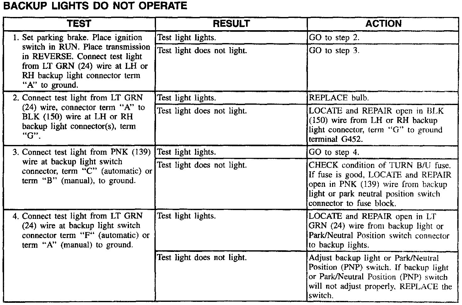 Backup Lights Do Not Operate: