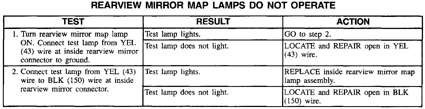 Rearview Mirror Map Lamps Do Not Operate: